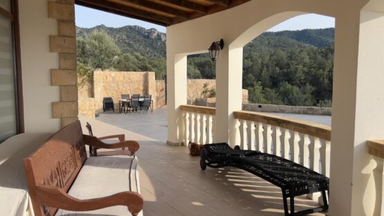 Außerhalb erwartet Sie ein Pool mit einer großzügigen Sonnenliegefläche, perfekt für entspannte Tage unter der Sonne. Der Garten ist liebevoll gestaltet mit einer Pergola außerhalb der Küche und einem Obstgarten mit Oliven-, Granatapfel-, Orangen- und Mandarinenbäumen, die von einem modernen Bewässerungssystem gepflegt werden.