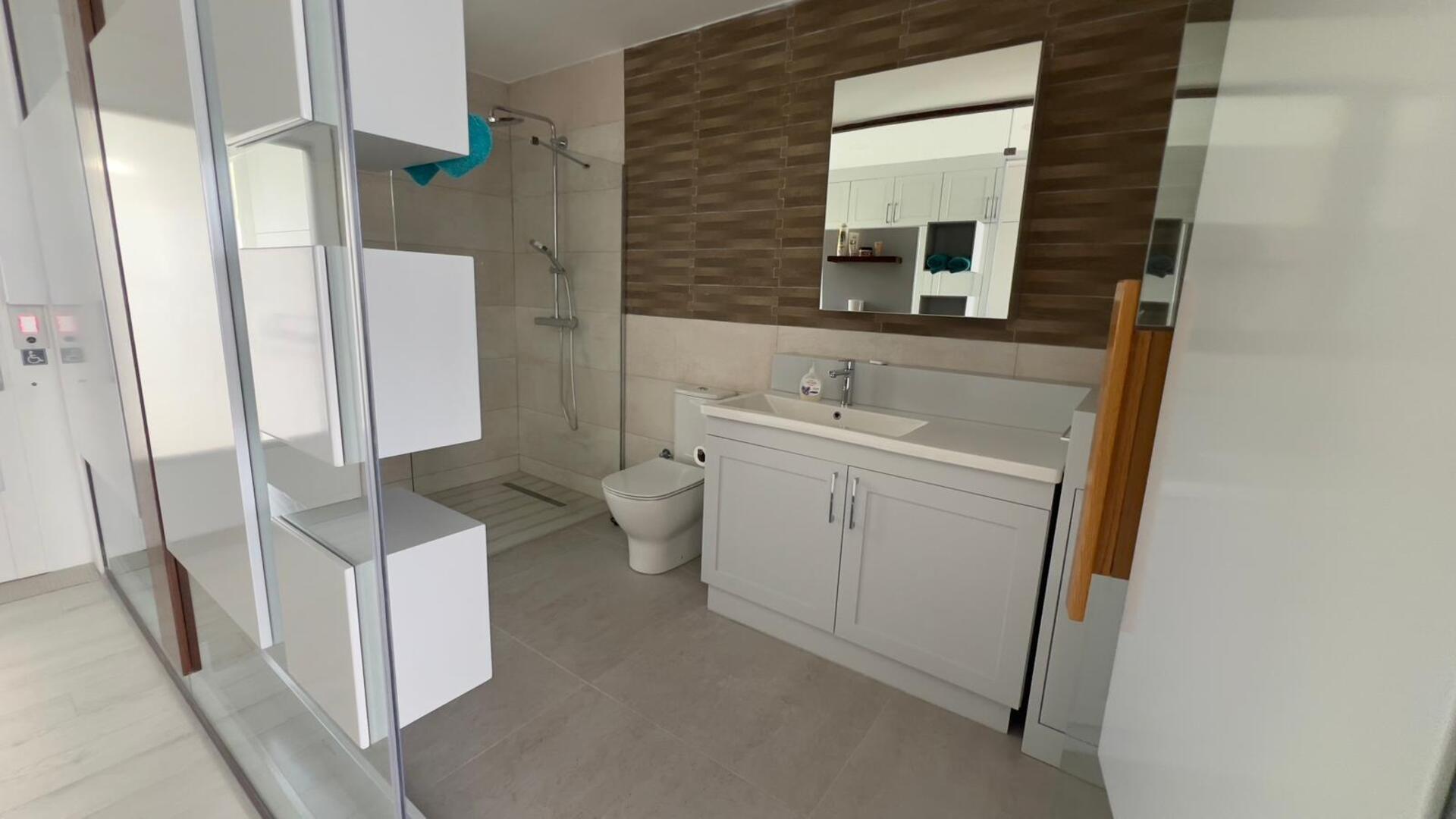 Der Eingangsbereich führt Sie in ein helles und einladendes Wohnzimmer, das mit einem Balkon ausgestattet ist, der einen atemberaubenden Blick auf das Meer bietet. Hier können Sie die Schönheit der Natur von Ihrem eigenen Zuhause aus genießen. Die moderne Küche ist komplett ausgestattet mit einem Gasherd, Geschirrspüler und einem Kühl-/Gefrierschrank - perfekt für die Zubereitung köstlicher Mahlzeiten.