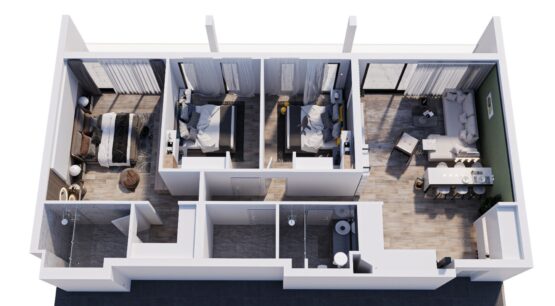 * 3 bedrooms